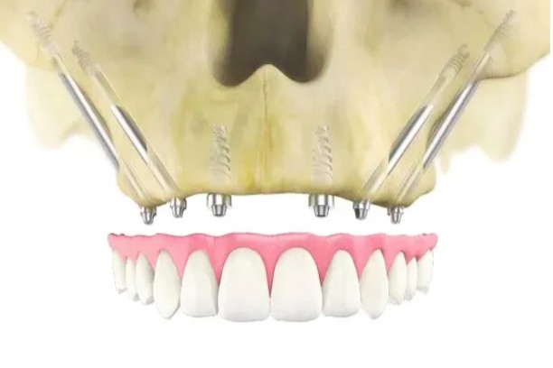 Anchored in the cheekbone for patients with limited upper jaw bone.